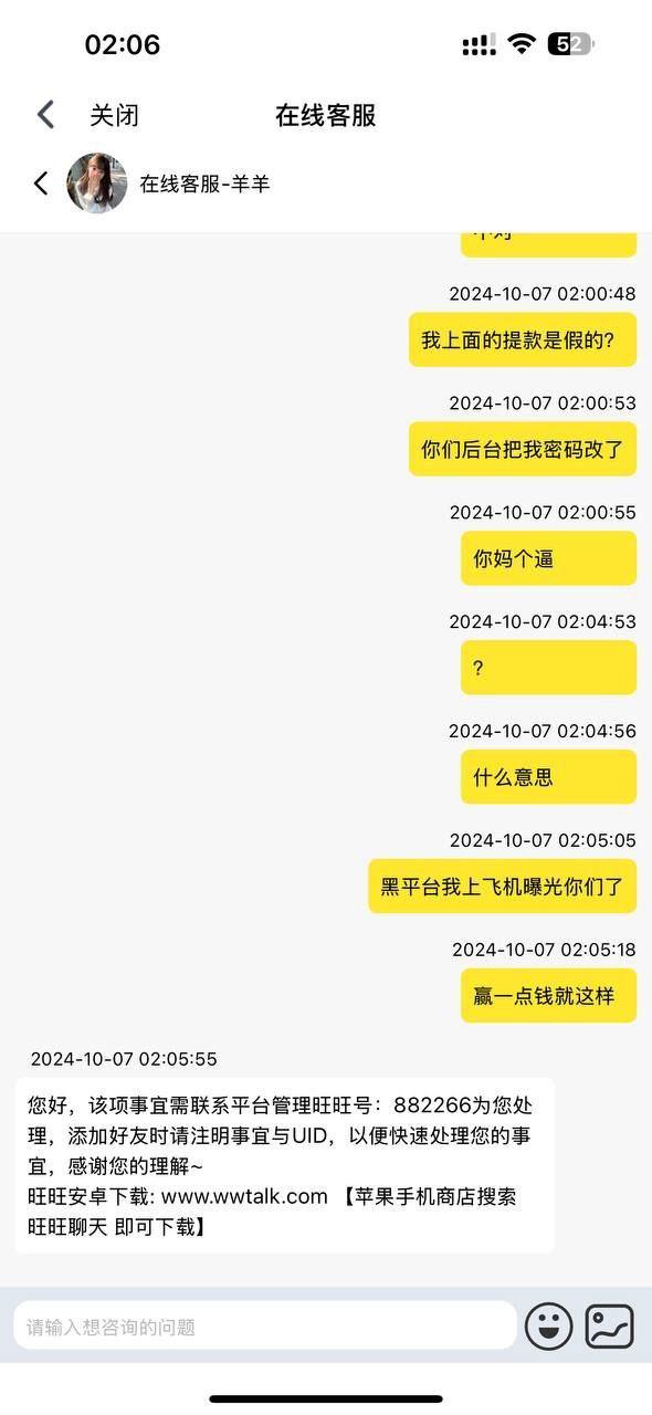 C7娱乐 今天运气好 打体育赢了三千多 直接给黑了 我本金1500在里面 提款3600 等了一个多小时 没到账 我上账号一看 密码直接被改了